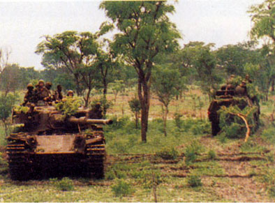 Ibamos con infantería fapla, al principio marchaba detrás de los tanques -error táctico-. El jefe de los tanques cubano se dio cuenta de que las tropas de la unita y la swapol* que servían de infantería se adelantaban a los tanques sudafricanos para colarse por los intersticios de nuestros blindados. El objetivo era destruirlos con los lanzacohetes antitanques y así separarlos de la infantería y después de destruir los tanques atrapar a la infantería con cooperación con los blindados y destruirla.